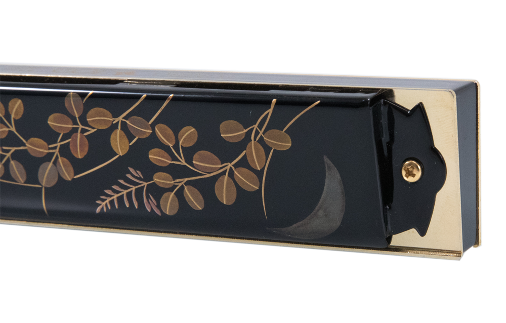 TOMBO 100周年紀(jì)念款復(fù)音21孔口琴,采用最新烤漆工藝,每一支口琴都是日本著名的手繪大師—中村光彩手繪而成,黑色烤漆的是C調(diào),紅色烤漆的是Am調(diào)可供選擇,加厚的音簧座板上采用的鍍金工藝。同NO.1921超特級(jí)的一樣的琴體。除了當(dāng)做收藏品外,作為樂器也可以演奏獨(dú)一無二的特音色。獨(dú)創(chuàng)的梧桐木琴盒防潮抗摔利于收藏。