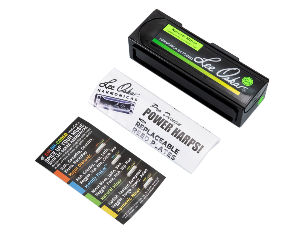 據(jù)說Lee Oskar先生是第一位致力于傳播十孔口琴自然小調(diào)音階的演奏家。同MAJOR(大調(diào))相比有五個(gè)不同的音,很輕松的就可以演奏小調(diào)和弦。此款產(chǎn)品最適合表現(xiàn)MINOR BLUES(小調(diào)布魯斯)、ROCK(搖滾)、LATIN(拉丁音樂)、HIP POP(嘻哈)、REGGAE(雷鬼)等音樂。此外,從第三孔吸音開始,通過三把位就可演奏大調(diào)樂曲。此款產(chǎn)品的調(diào)式命名是以二把位命名的,即Gm調(diào)的琴表示二孔吸氣音為G。此種豐富的音階排列必定是口琴演奏家的演奏用琴和收藏佳品。Lee Oskar口琴盒的設(shè)計(jì)很有特色,各調(diào)式口琴盒之間可以相互串聯(lián)在一起。