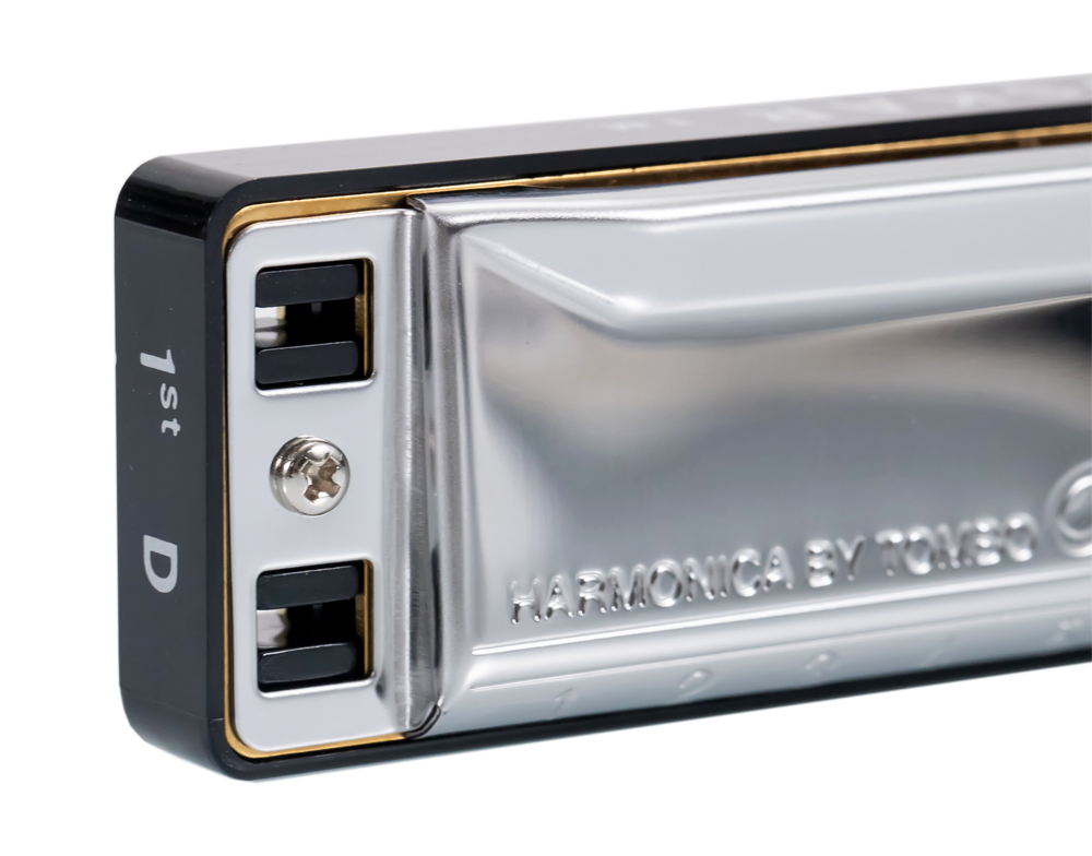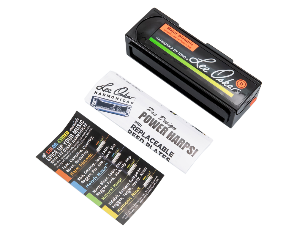 最普通的十孔口琴音階排列方式,大多數(shù)品牌的產(chǎn)品音階排列與此相同。這種音階排列適合于演奏BLUES(布魯斯)、FOLK(民謠)ROCK( 搖滾)、COUNTRY(鄉(xiāng)村)、POP(流行)等音樂。另外通過把位的轉(zhuǎn)換和壓音技巧的使用,可以充分的表現(xiàn)出BLUES(布魯斯)的音樂特色。氣息的控制、口型及舌頭位置的調(diào)節(jié)很重要,需要長(zhǎng)時(shí)間練習(xí)。Lee Oskar口琴盒的設(shè)計(jì)很有特色,各調(diào)式口琴盒之間可以相互串聯(lián)在一起。