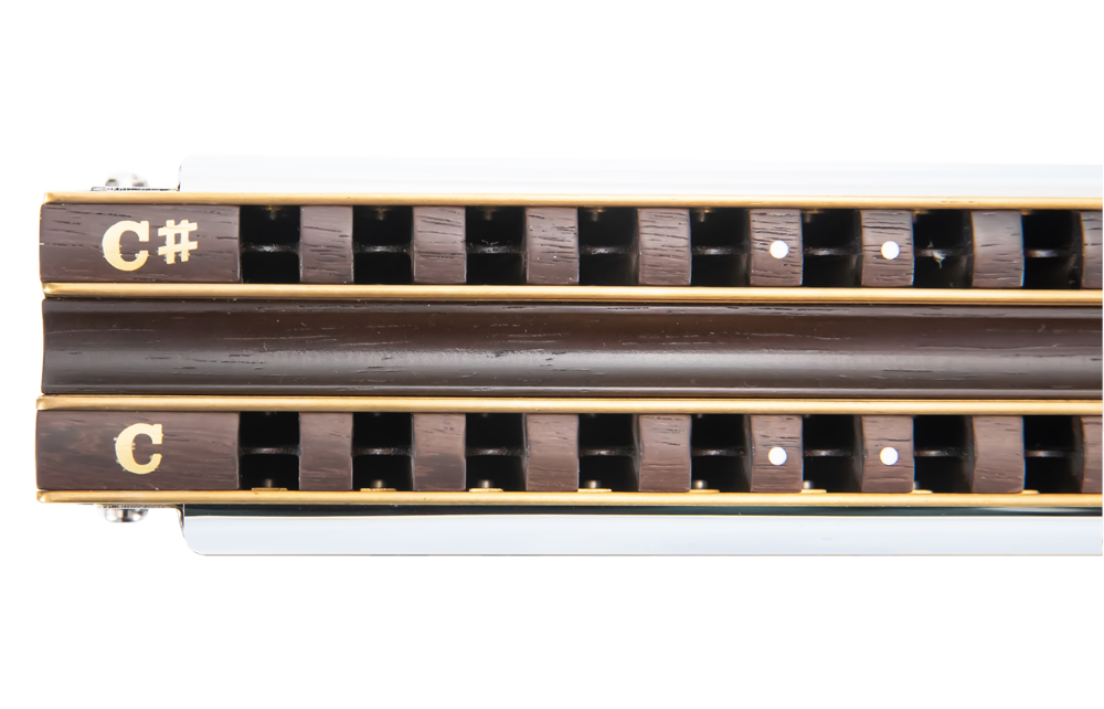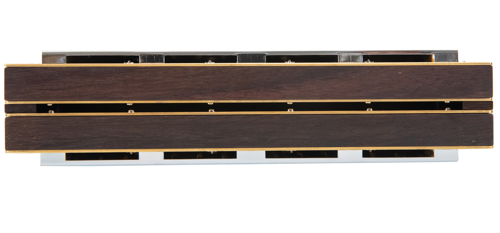 目合奏親被人們不斷創(chuàng)新,為充分發(fā)揮高難度技巧的效果,我們開始重視通過貝司音域進行調整。以應對快速演奏。此款八度貝司口琴采用玫瑰木材料。由2片不同八度的簧片同時發(fā)音,不僅可發(fā)出貝司音色,也可吹奏出低、中音域旋律的效果。